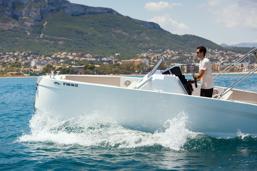 In BOAT RENTAL DENIA we rent boats con y sin patrón. Puedes pilotar un barco de hasta 5,99 metros con el Título de Licencia de Navegación (LN). La potencia sería la homologada para la embarcación, teniendo en cuenta que no te puedes alejar mas de 2 millas marinas de la costa. El precio de un patrón ya sea para un barco de menos de seis metros como de más de seis y hasta 8 metros es de 85€ para media jornada (4 horas) y 160€ para una jornada completa (8 horas) También hacemos boat tours